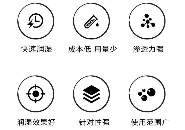 非離子型潤濕劑有多種類型,其中包括:脂肪醇類脂肪酸類聚氧乙烯醇類聚氧乙烯醚類硅油類脂肪醇類:這類潤濕劑包括月桂醇、硬脂醇、甘油等,它們具有良好的潤濕性能,可用于處理塑料、金屬、玻璃等各種材料表面,提高其濕潤性和潤滑性。此外,它們還具有較低的刺激性,對皮膚和眼睛的刺激性較小,因此被廣泛應用于化妝品、洗滌劑等領域。脂肪酸類:這類潤濕劑主要包括一些高級脂肪酸,如硬